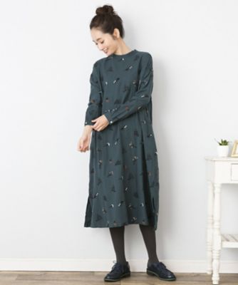 style confort スティールエコンフォール コットンツイルフランネルスタンドカラーワンピース