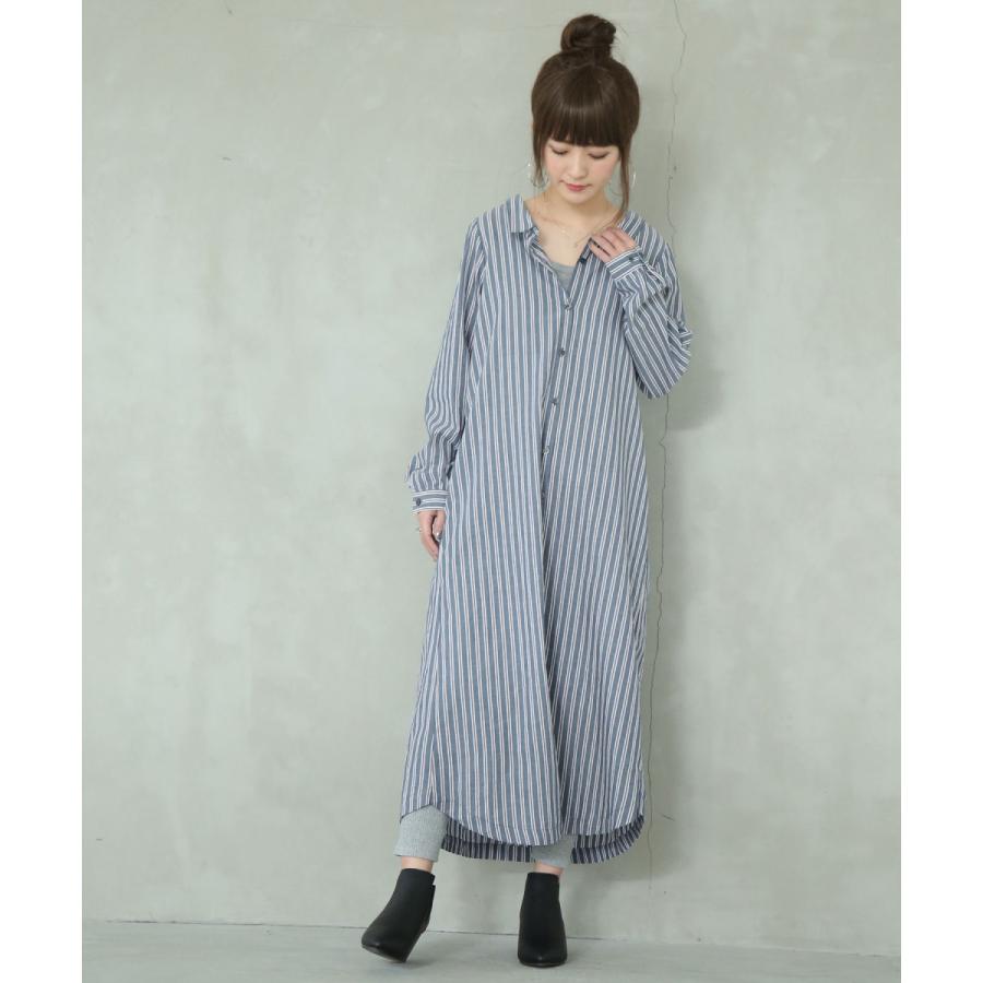 ロング レディース ワンピース シャツワンピ 長袖 2way ストライプ柄シャツワンピース 返品交換不可 メール便不可 オシャレウォーカー 通販 paypayモール