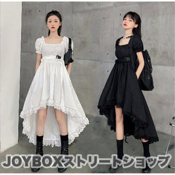 フィッシュ テール フリル ワンピース レース 韓国 ストリート 原宿系 半袖 オルチャン v系 スクエア ネック ガチャ ベルト k pop 変形 アシメ op 1170 op 1170 joyboxストリートショップ 通販 yahoo ショッピング