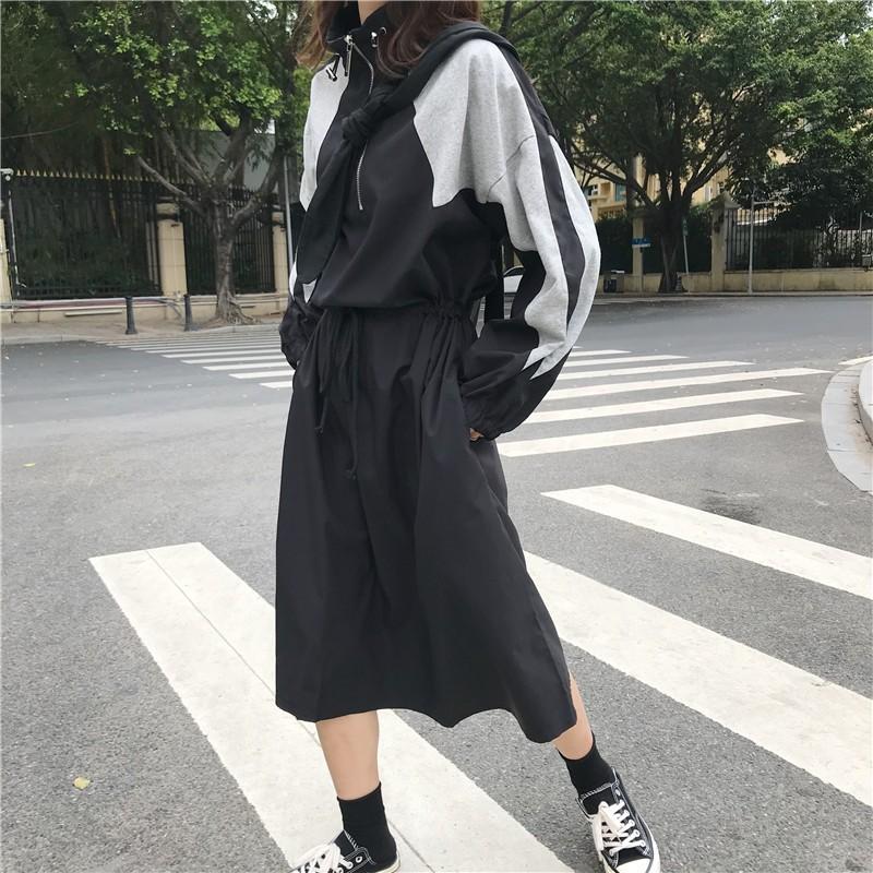ストリート系プリントフード付きスリットカジュアルワンピース roupas roupas lindas