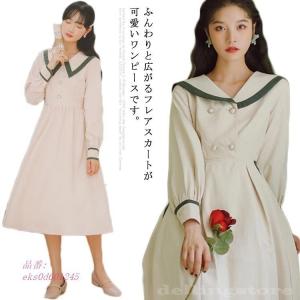 ワンピース セーラー襟 長袖 ミドル丈 ミモレ丈 ゆったり ガーリー 可愛い 秋 冬 お出掛け デート 女子会 ukiukionepicec powered by base