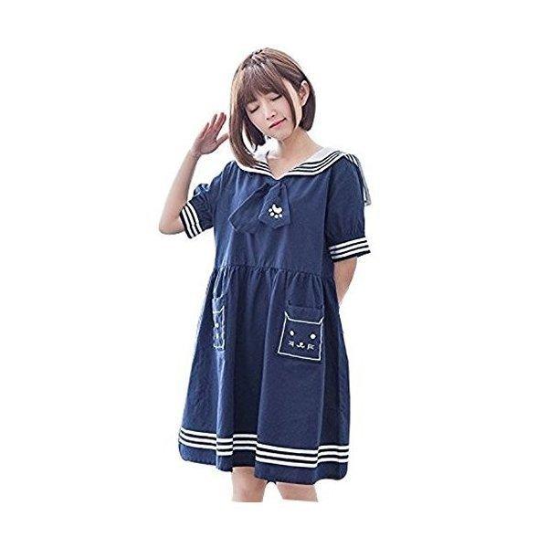 キュート猫柄森ガールマリンセーラー冬服レディースワンピースセーラー風海軍風ワンピース