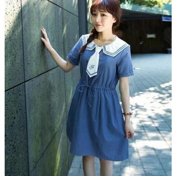 森ガール ワンピース セーラー襟 セーラー風 半袖 ワンピ リボン 学生 制服 春 セーラーワンピース 夏 白ライン aライン ひざ丈 mon078 yuhin 通販 yahoo ショッピング
