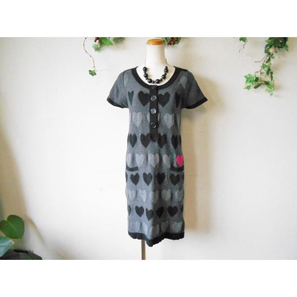 ソニアリキエル sonia rykiel collection 長袖 ニット ワンピース 膝丈 40 灰系 チャコールグレー ライン 刺繍 レディース