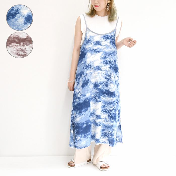 レディース トレンド キャミワンピ タイダイ柄 ワンピース くすみカラー グレージュ ブルー プチプラ レイヤード かわいい リゾート 春 夏 洋服 韓国 147n34402 nofallsango 通販 yahoo ショッピング