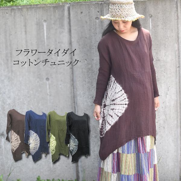 タイダイワンピース タイダイ染め ワンピース 絞り染め wガーゼ コットン エスニックワンピース エスニック アジアンワンピース アジアン 長袖 夏 秋 ダブルガーゼ エスニックファッションバリブラン