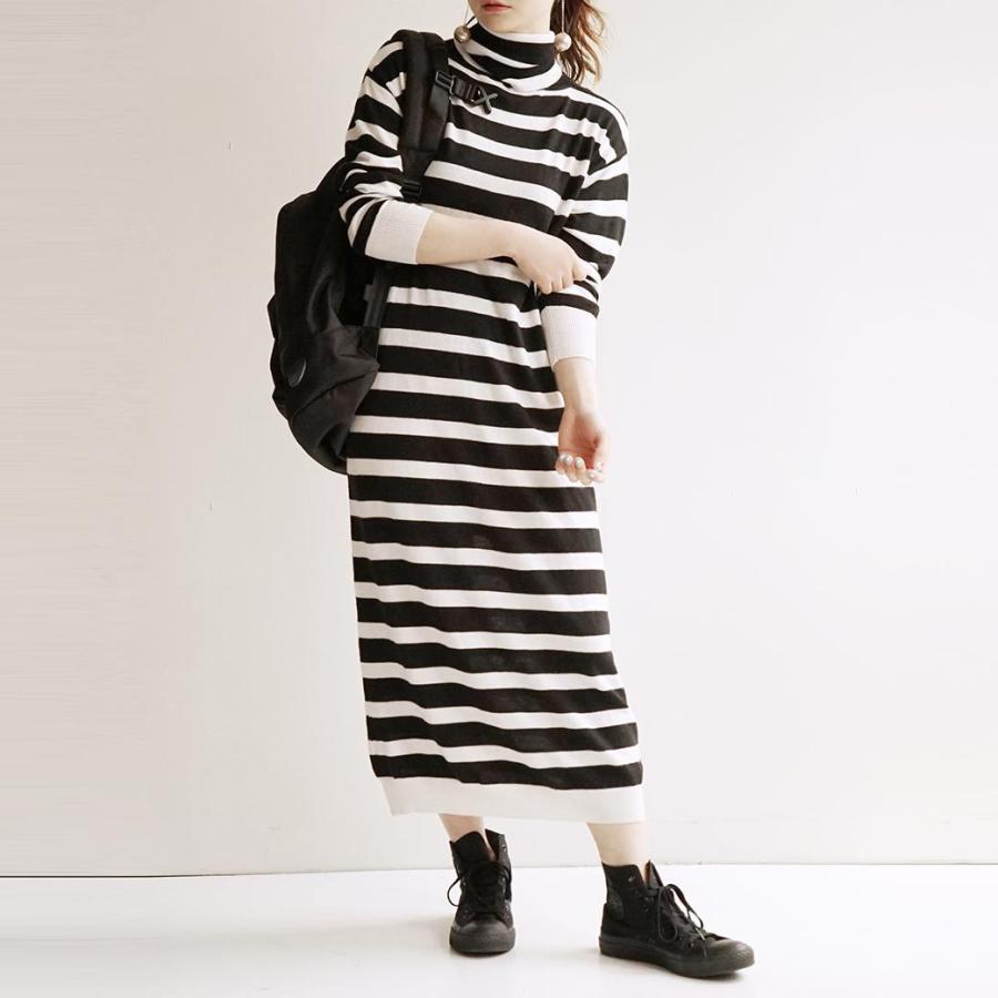 hcmt タートルネックワンピース レディース フリーサイズ ニット 秋冬春 タイト 伸縮