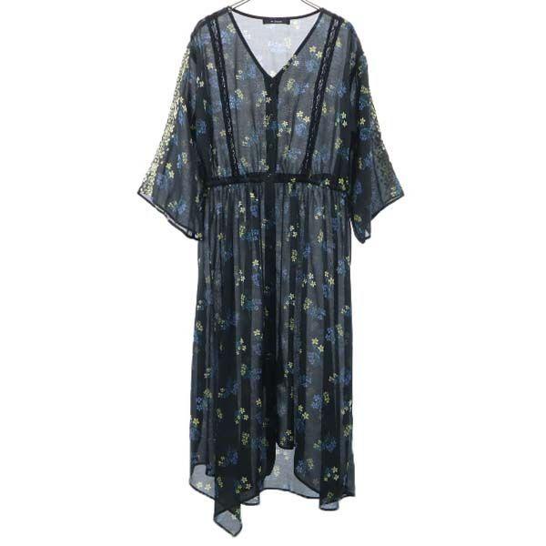 ダブルクローゼット 七分袖 花柄 ワンピース 黒 w closet ロング レディース 古着 210224