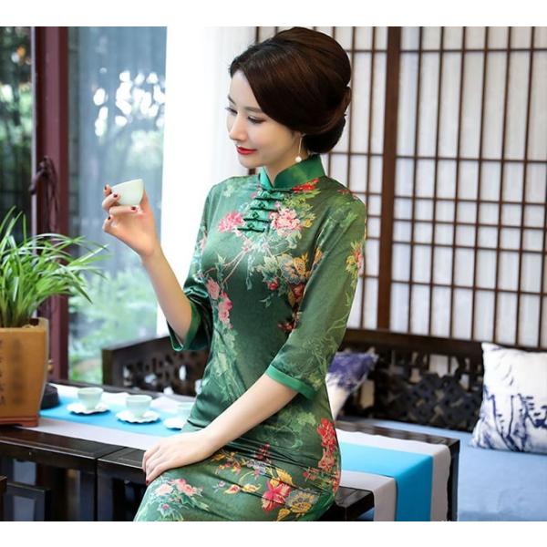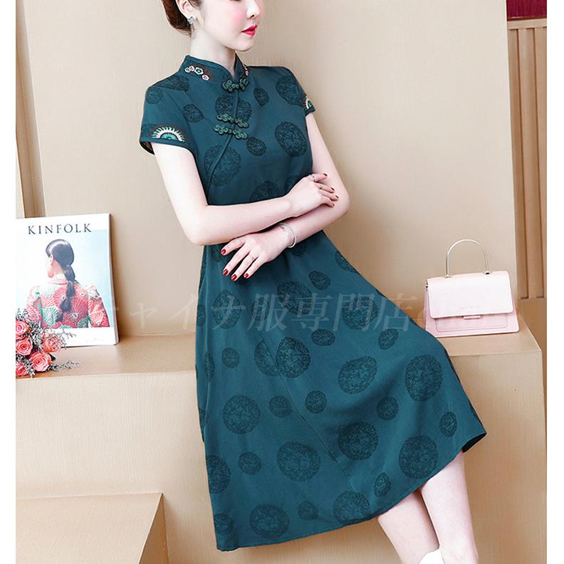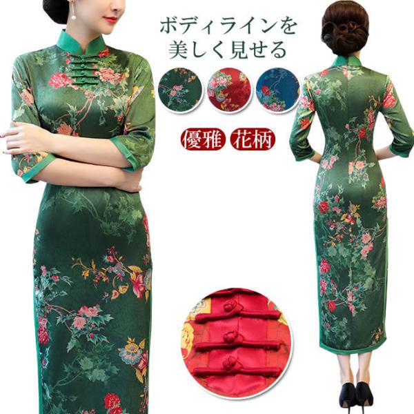 チャイナドレス ワンピース ドレス チャイナ風服 演出服装 イベント 舞台衣装 パーティー スタンドネック ロング丈 半袖 エレガント 着痩せ 上品 大きいサイズ xs s m l ll 3l 4l 改良型チャイナドレス ワンピース ドレス チャイナドレス ドレス
