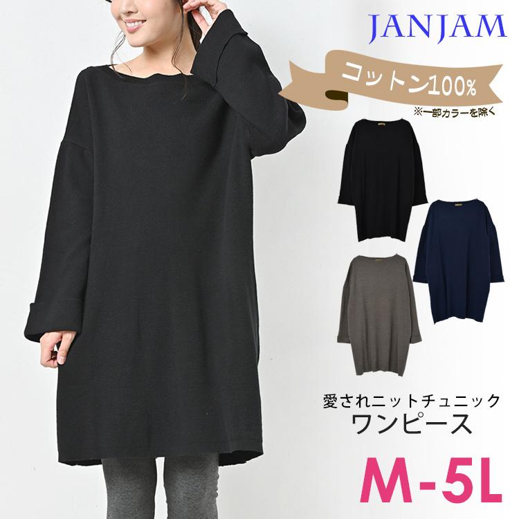 大きいサイズ レディース チュニックワンピース 長袖 ミドル丈 折り返し袖 ミラノリブ cotton100 m l ll 3l 4l 5l on saw op0095 大きいサイズレディースjanjam 通販 yahoo ショッピング