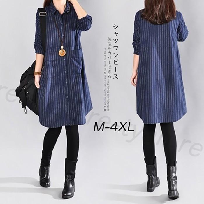 シャツワンピース レディース きれいめ 秋 チュニックワンピース 長袖 aライン ロングシャツ ストライプ 体型カバー 大きいサイズ 可愛い 30代 40代 着痩せ z5lady204 レーちゃん 通販 yahoo ショッピング