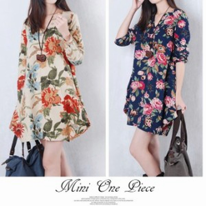 チュニック レディース 春 春服 夏 トップス ワンピース チュニックワンピース 長袖 大きいサイズ ゆったり 花柄 北欧風フラワー タックチュニック イーザッカマニアストアーズ 通販 paypayモール