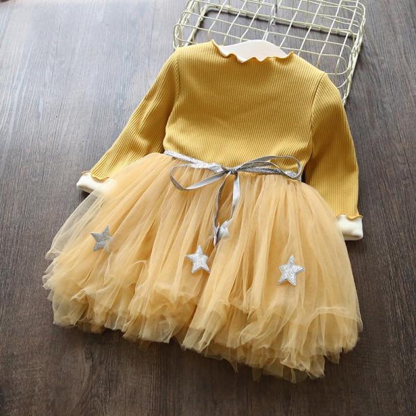 韓国子供服 冬新作 キッズ ワンピース 厚手 裏起毛 切替チュールワンピース チュールスカート 子供服 女の子 可愛い 星リボン付き 長袖ワンピース buyee buyee 日本の通販商品 オークションの代理入札 代理購入