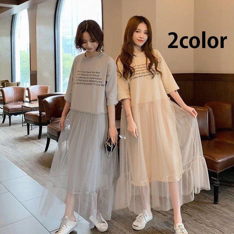 大特価 ブラック レイヤード 重ね着風 チュールスカート チュチュ レース tシャツ 半袖 マキシワンピース ロングワンピース 通販
