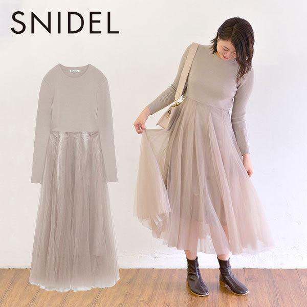 スナイデル snidel 20冬アイテム ニットxチュールコンビワンピース レディース ワンピース ロング丈 ロングワンピース 長袖 ニット チュール