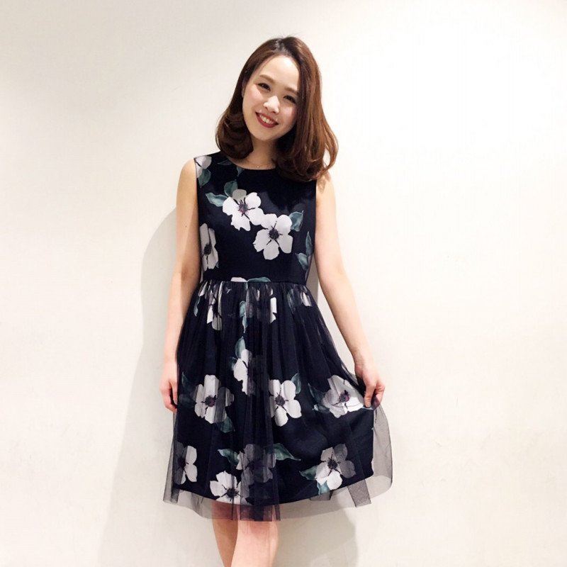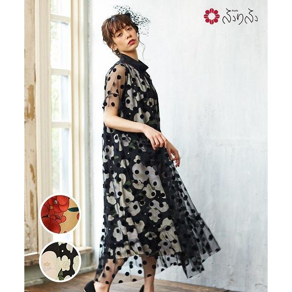 チュール 二重織花柄ワンピース