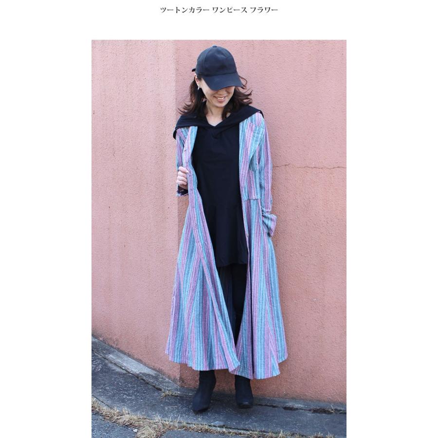 ワンピース ピンク 無地 フリル バイカラー ツートンカラー フレア 長袖 リボンタイ 襟付き ゴールドボタン ミニ丈 ハイウエスト スタイルアップ 大人 可愛い レトロ キュート ガーリー フェミニン デイリー お出かけ デート 秋 大きいサイズ レディース sea sign post