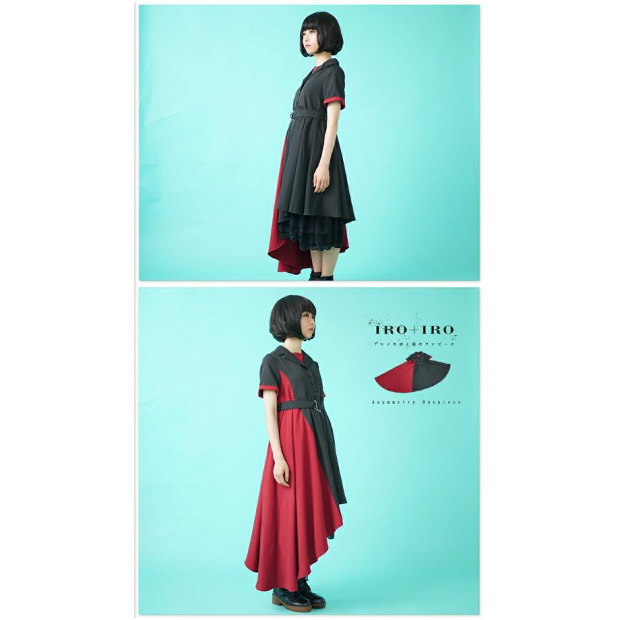 大きいサイズ アシンメトリー ツートーンカラー シャツワンピース favoriteオリジナル レッド ブラック ツートンカラーのアシンメトリーシャツワンピース iro iro 2019年5月新作中旬 森ガール ワンピ専門店のfavorite公式通販サイト