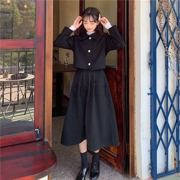 レディース ワンピース 秋冬 ツーピースワンピース セットアップ ニットベスト シャツカラーワンピース ミモレ丈 ロング丈 フレア フェミニン ガーリー 大人ガーリー 大人カジュアル カジュアル 秋 冬 レッド ブラウン ブラック フリーサイズ op 1865 y
