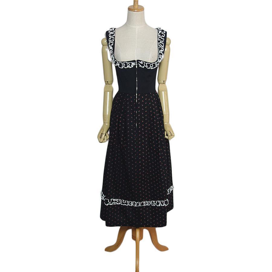 xs mサイズ ヨーロッパ製古着 ドイツ民族衣装 ディアンドル チロルワンピース ネイビーにピンクの小花 ミドル丈ワンピース 中古 coolklothes powered by base