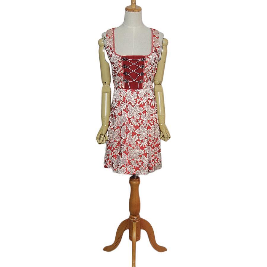 rose dirndl aus bayern 花刺繍 レッド フロントジッパー ノースリーブ ディアンドル チロルワンピース ドイツ民族衣装 舞台 演奏会 フォークダンス オクトーバーフェスト 7841
