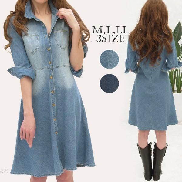 デニムワンピース ロールアップ 秋春デニムワンピース 大きいサイズ レディース デニム ワンピース 五分袖ファッション 着こなし おしゃれ カジュアル ys0006 fashion mille powered by base