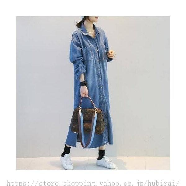デニムシャツワンピース 長袖 デニムワンピース シャツワンピース ロングワンピース ワンピース 春 秋 膝下丈 ロング丈 aライン お洒落 大人 女性 春服 春物送料無料 twinleaf 楽天市場店
