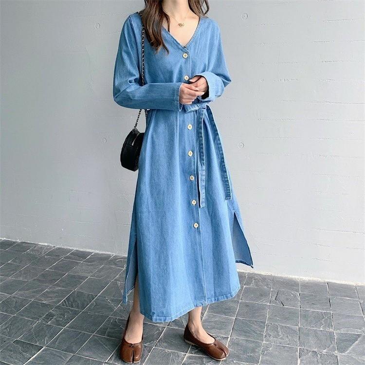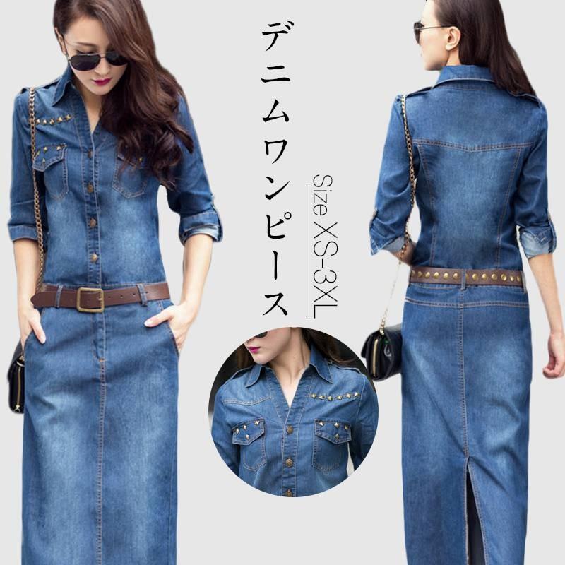 ワンピース レディース 秋 デニムワンピース 40代 長袖 ベルト付き 2点セット 冬 デニム ロング丈 マキシ 春夏 着痩せ 韓国風 おしゃれ ol通勤 fuy4 面白生活館 通販 yahoo ショッピング