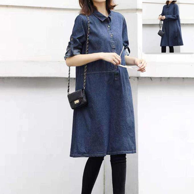 デニムワンピース デニム ワンピ コットン 綿 ロング丈 ミモレ膝丈ワンピ 長袖ワンピース ロング 体形カバー ゆったり レディース 春 夏 秋 冬 ロールアップ cs182 sakura ファッション 通販 yahoo ショッピング