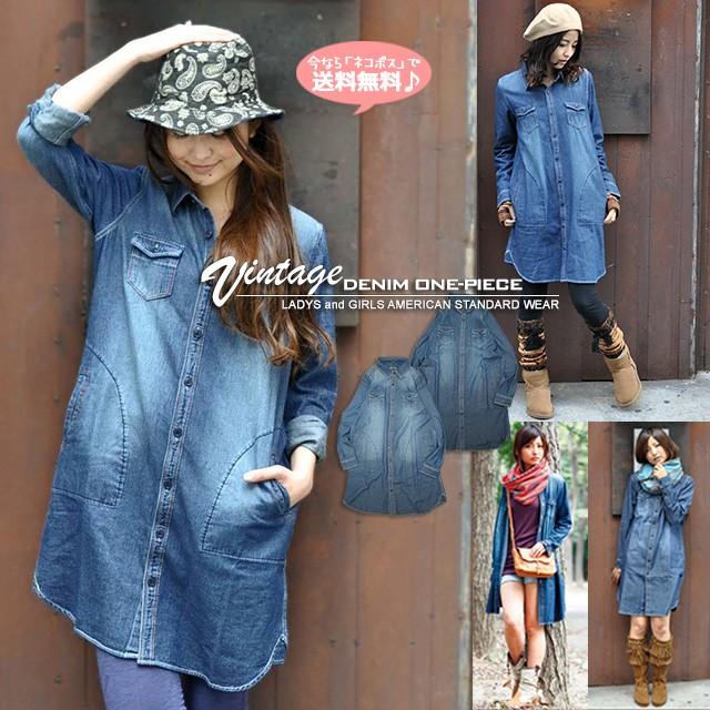 デニムワンピース デニム ワンピ コットン 綿 ロング丈 ミモレ膝丈ワンピ 長袖ワンピース ロング 体形カバー ゆったり レディース 春 夏 秋 冬 ロールアップ cs182 sakura ファッション 通販 yahoo ショッピング
