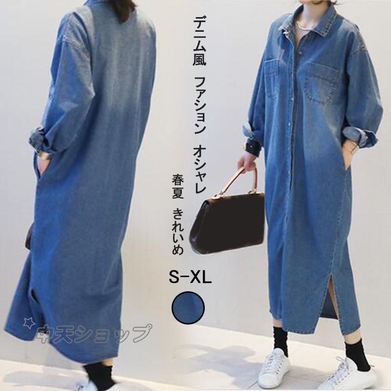シャツ デニムワンピース 長袖 ロング コーデ ダメージデニム 40代 デニム ロングワンピース 大きいサイズ デニムワンピ シャツ シャツワンピ マキシワンピース マキシ丈 春 長袖 きれいめ ナチュラル 可愛い 春秋新作 春物 ゆったり 体型カバー 通勤 通学 ワンピ シンプル m l xl