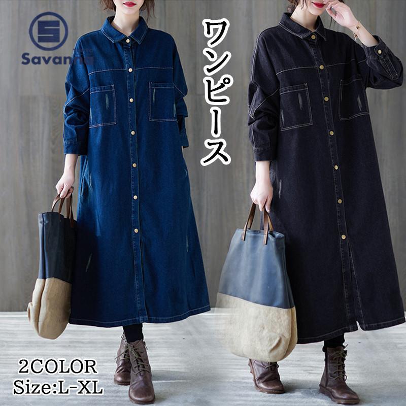 デニムシャツワンピース デニムワンピース 長袖 ロング デニム ロングワンピース 大きいサイズ デニムワンピ シャツ シャツワンピ マキシワンピース マキシ丈 春 長袖 きれいめ ナチュラル 春秋新作 春物 ゆったり ぽっちゃり 体型カバー 通勤 通学 ワンピ シンプル soomoo