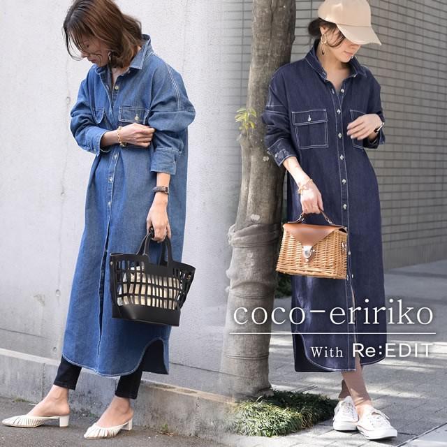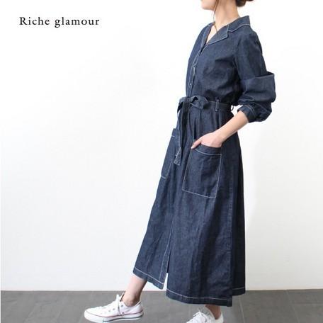 デニム ロングシャツ シャツワンピ レディース 長袖 シャツ ロング ワンピース トップス ブラウス rico collection