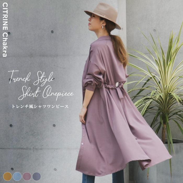 送料無料 トレンチ風シャツワンピース シャツ ワンピース ロングワンピース トレンチコート レディース 秋冬 20090134ks012 citrine chakra シトリン チャクラ 通販 yahoo ショッピング
