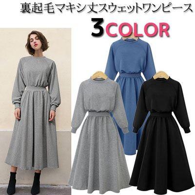 裏起毛 ワンピース レディース スウェット 裏起毛 スウェットフレアマキシワンピース e2300 入荷済 レディース ワンピース フレアワンピース 裏起毛 防寒 体型カバー マキシ丈 フレアワンピース 送料無料 神戸レタス kobe lettuce