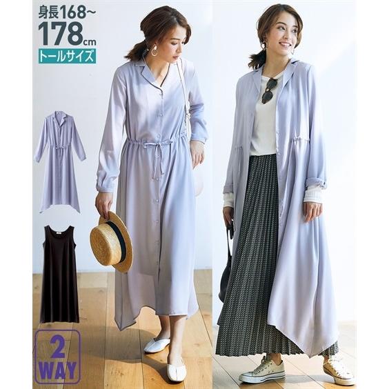 nissen ニッセン 長袖 トールサイズ ワンピース トールサイズ ロング丈シャツワンピース 共布ベルト付