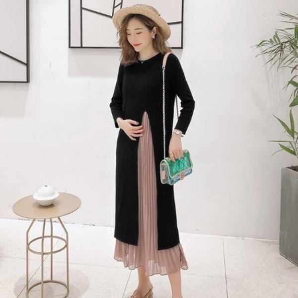 ドッキングワンピース ロングワンピース ニットワンピース ワンピース レディース 秋冬 体型カバー 大きいサイズ ブラック ネイビー 柄物 韓国ファッション オルチャン オルチャンファッション シンプル インスタ映え