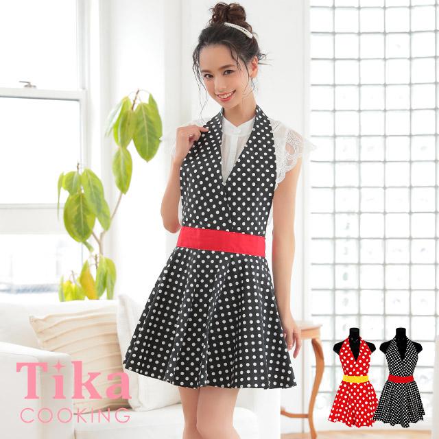 エプロン おしゃれ レディース ドット柄 ワンピース 水玉 カシュクール 保育士 赤 黒 ドレス tk apapron07 ドレスショップ tika 通販 yahoo ショッピング