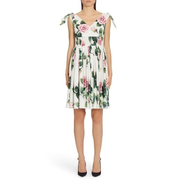 ドルチェ ガッバーナ ワンピース トップス レディース rose print tie strap a line dress white spabri com