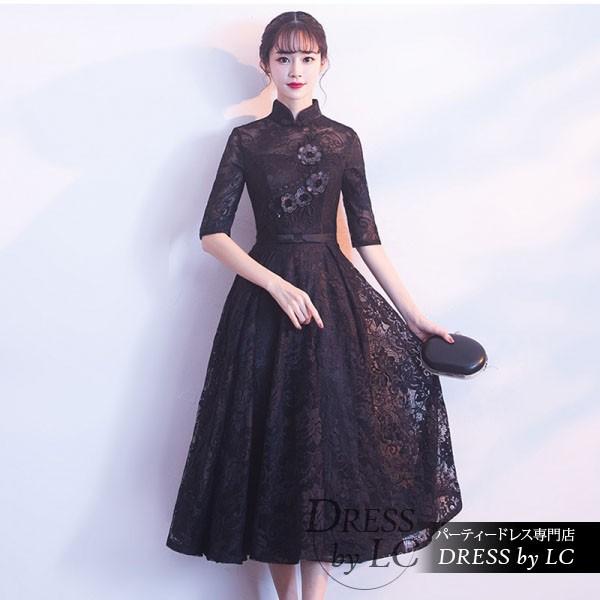 ミモレ丈ドレス チャイナドレス風 レースワンピース 7分袖 シースルー 花刺繍 カラードレス 結婚式 二次会 パーティー フォーマル ptnym0882 dress suba powered by base