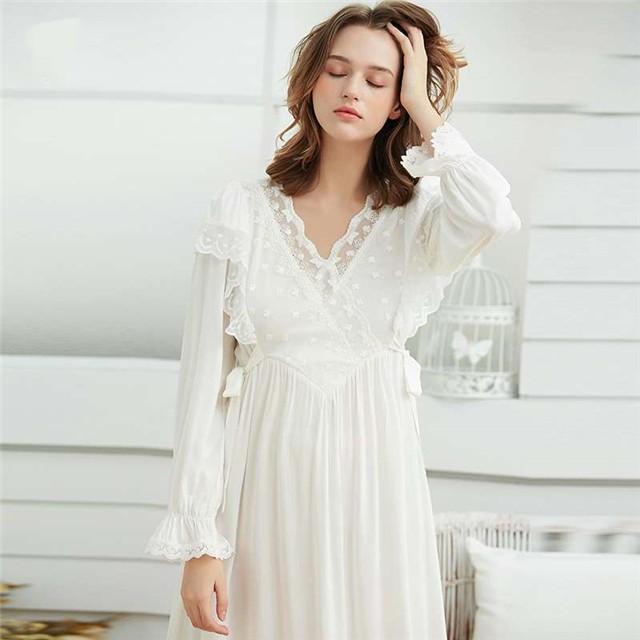 amazon co jp fevon ネグリジェ 長袖 ロング丈 ルームウェア レディース ワンピース 春秋 姫系 プリンセス風 レトロ調 おしゃれ vネック レース エレガント 部屋着 ナイトドレス ルームワンピース 寝間着 ナイトウェア 寝巻き 服 ファッション小物