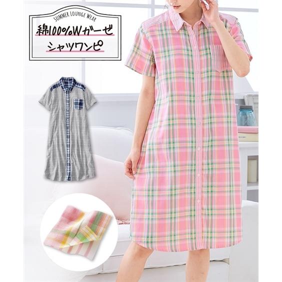 ニッセン プチプラのあや 重ね着風5分袖シャツワンピース