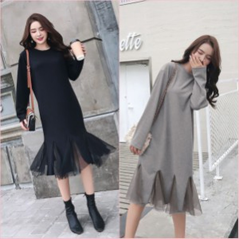 春 ニットワンピース 韓国 ファッション レディース ワンピース 春服 レディース 異素材ワンピース 異素材 ドッキングワンピース チュー