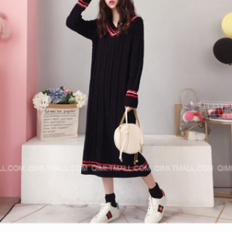 naning9vネックニットワンピース韓国 韓国ファッション vネック