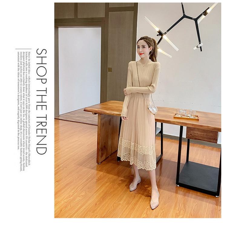 ワンピース aライン ニットワンピ フレアワンピ ハイネック ロング丈 リブ レディース マキシワンピース ロングニット 無地 秋冬 リブドッキング 長袖 黒 y19lyq08x064 アジアンストア 通販 yahoo ショッピング