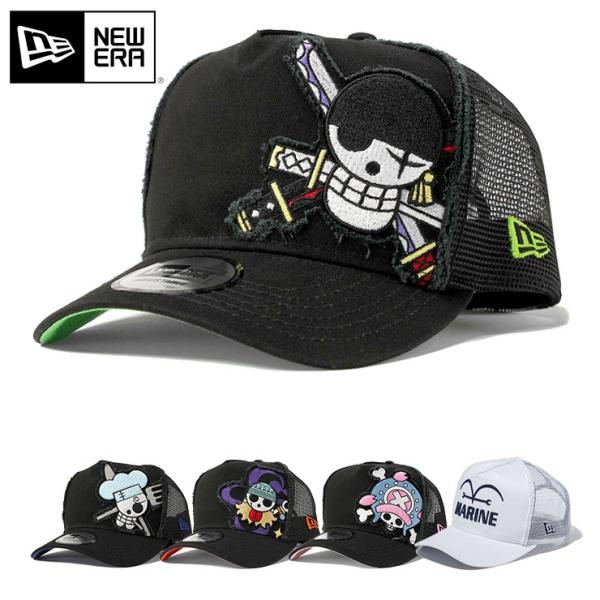 ワンピース ニューエラ 940 スナップバック キャップ エーフレーム トラッカー ブルック ブラック ブラックメッシュ オフィシャルカラー クラウド one piece new era 9forty snap back cap a frame trucker brook black mesh official color cloud