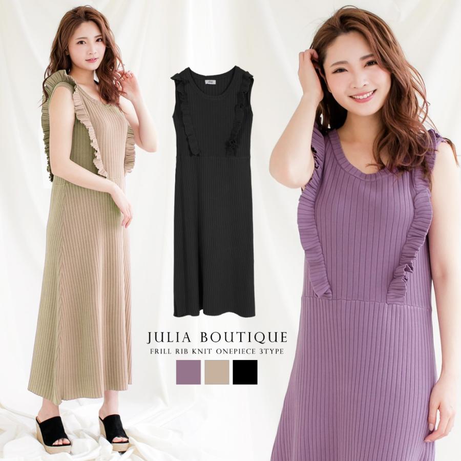 sale ニットワンピース レディース 夏 ロング ノースリーブ ワンピース 夏 マキシワンピース 肩フリル フレア 510661 510661 julia boutique 通販 yahoo ショッピング