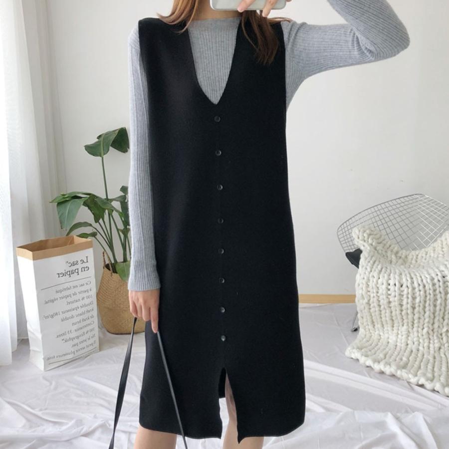 ベストワンピース レディース 重ね着 ニットワンピース ノースリーブワンピース 前ボタン付き ゆったり 11dkza 015 miniministore 通販 yahoo ショッピング