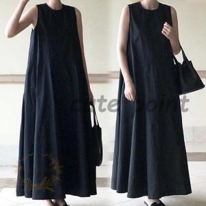 ノースリーブaラインワンピース 綿 綿100 コットン100 aライン ロング丈 ロング ノースリーブ ワンピ 黒 きれいめ マタニティ レディース ピエロ pierrot