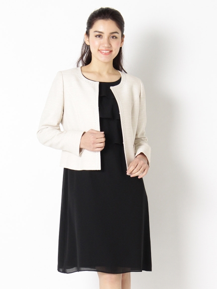 ノーカラージャケット シフォンタイトワンピースの2点セットアップセレモニースーツ